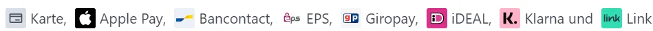 Zahlung erfolgt über Stripe mit folgenden Zahlungsmöglichkeiten:
